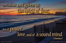 2 Timothy 1:7 says, For God hath not given us the spirit of fear; but of power, and of love, and of a sound mind.